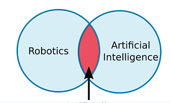 The first thing to clarify is that robotics and artificial intelligence are not the same things at all. In fact, the two fields are almost entirely separate.A Venn diagram of the two fields would look like this: